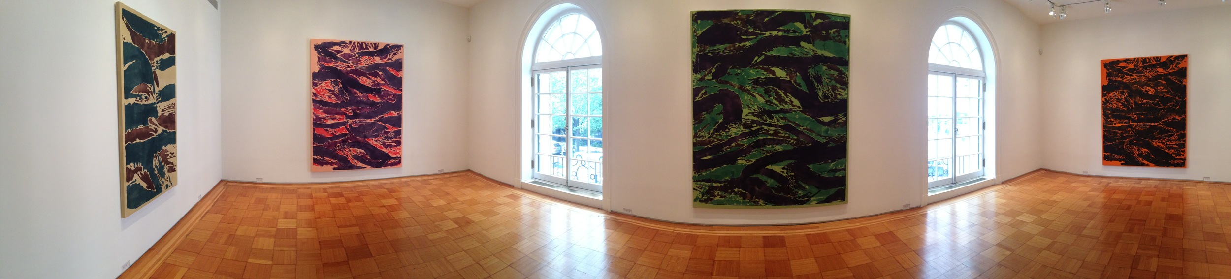 A series of 11 large paintings from Lucien Smith are on view at Skarstedt's Upper East Side gallery. Here Smith takes inspiration from a work that had a deep influence on him, the ukiyo-e woodblock print by Japanese artist Hokusai "The Great Wave off Kanagawa," but through his use of abstraction and the infusion of camouflage produces work that combines nature and man in a tense dialogue. The show closes June 27th.