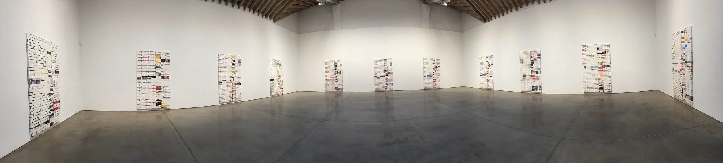 In his fifth solo exhibition with Paula Cooper, Kelley Walker presents twelve new brick paintings from 2013-2014, each signifying a month from 2012. Begun in 2005, these newest works offer a new complexity to Walker’s ongoing series of brick paintings, as he develops dialogues through collaged elements from issues of Domus (a monthly architectural magazine), silkscreened images, and bursts of vibrant color. Each of the twelve paintings vacillate between trompe l’oeil technique and the inherent flatness of the canvas, an effect heightened by Walker’s diverse use of materials. The exhibition is on view through April 18th.